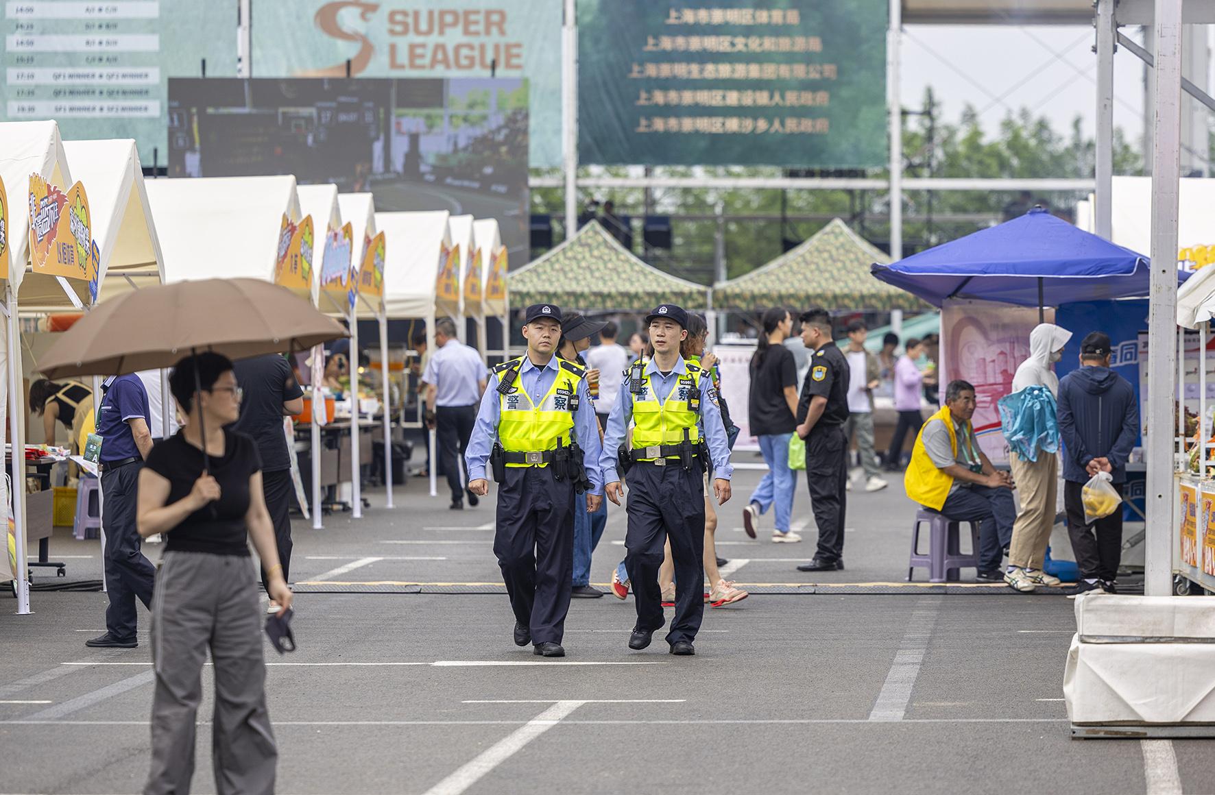 6月8日,上海市公安局崇明分局建設(shè)派出所民警在2025“一帶一路”國(guó)際籃球邀請(qǐng)賽賽場(chǎng)外進(jìn)行動(dòng)態(tài)巡邏。