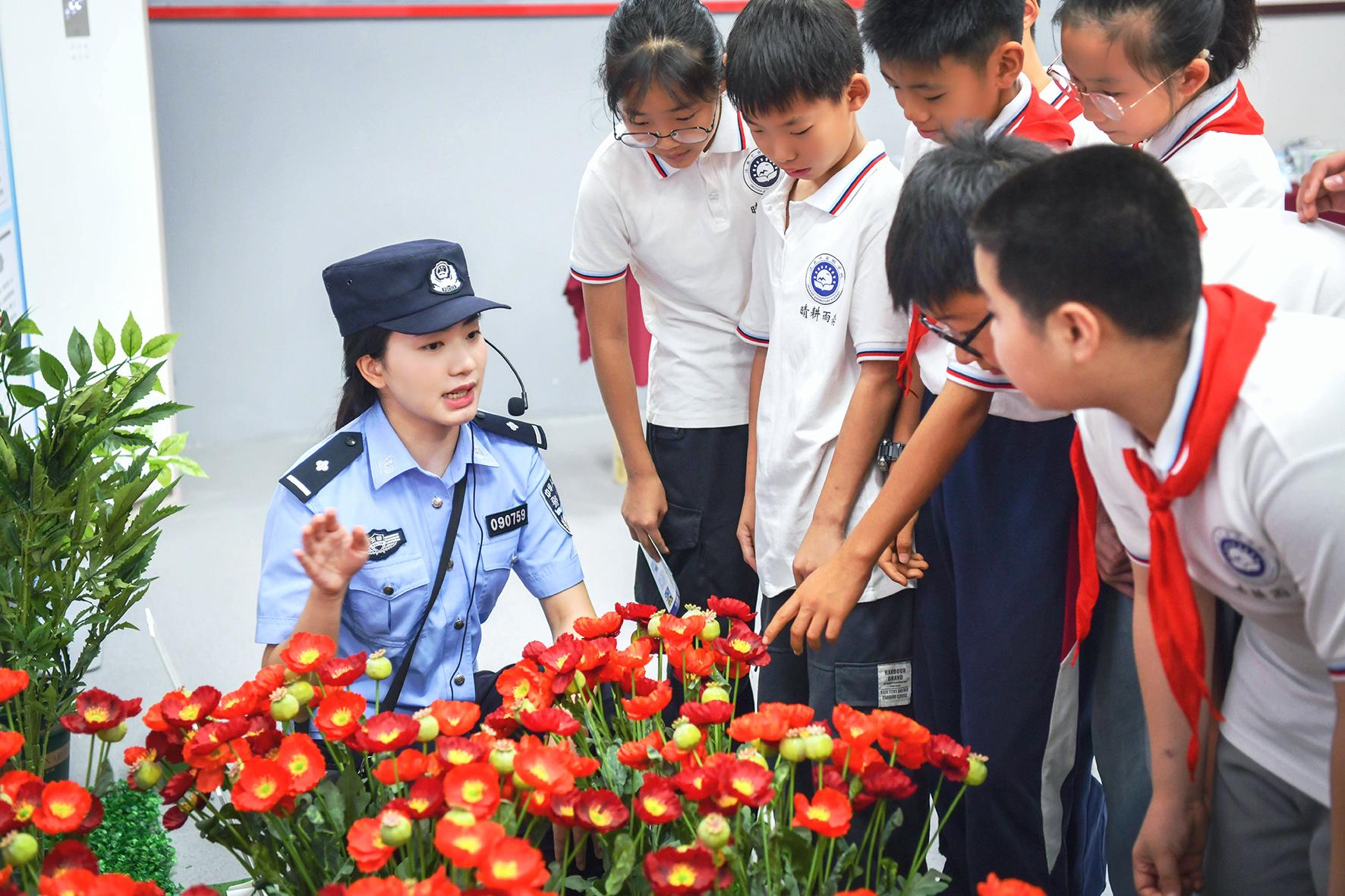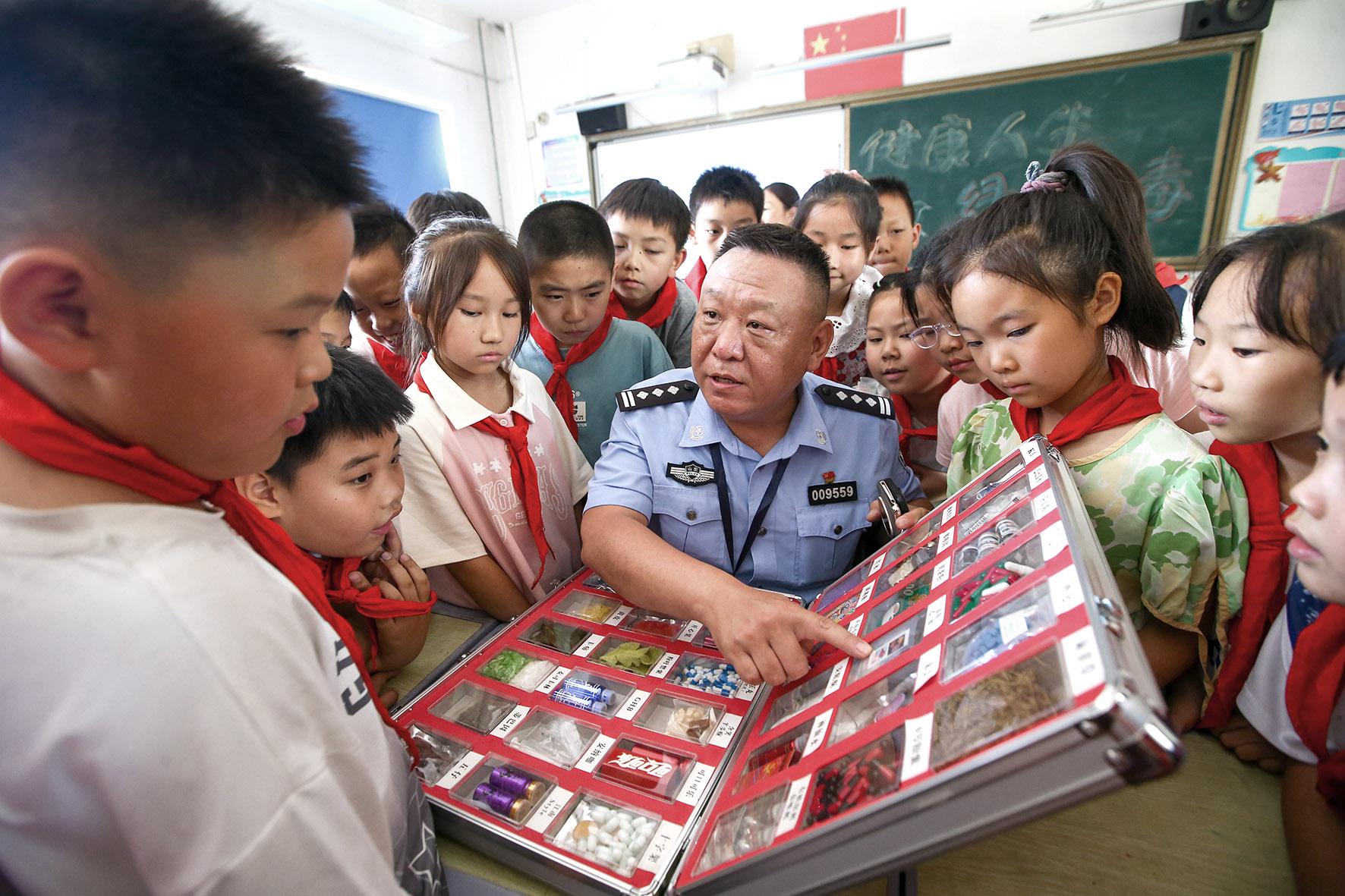 6月23日,安徽省涇縣公安局民警在涇縣毒品預(yù)防教育基地為學生講解禁毒知識。