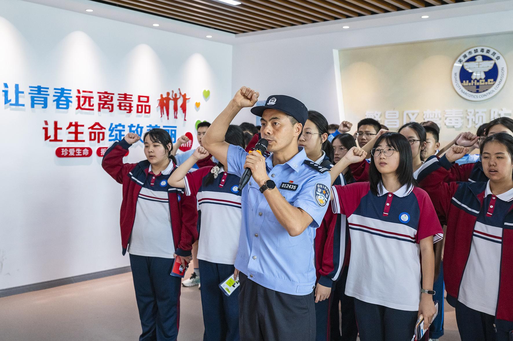 在第38個國際禁毒日來臨之際,6月24日,安徽省蕪湖市公安局繁昌分局民警帶領(lǐng)學生進行禁毒宣誓。