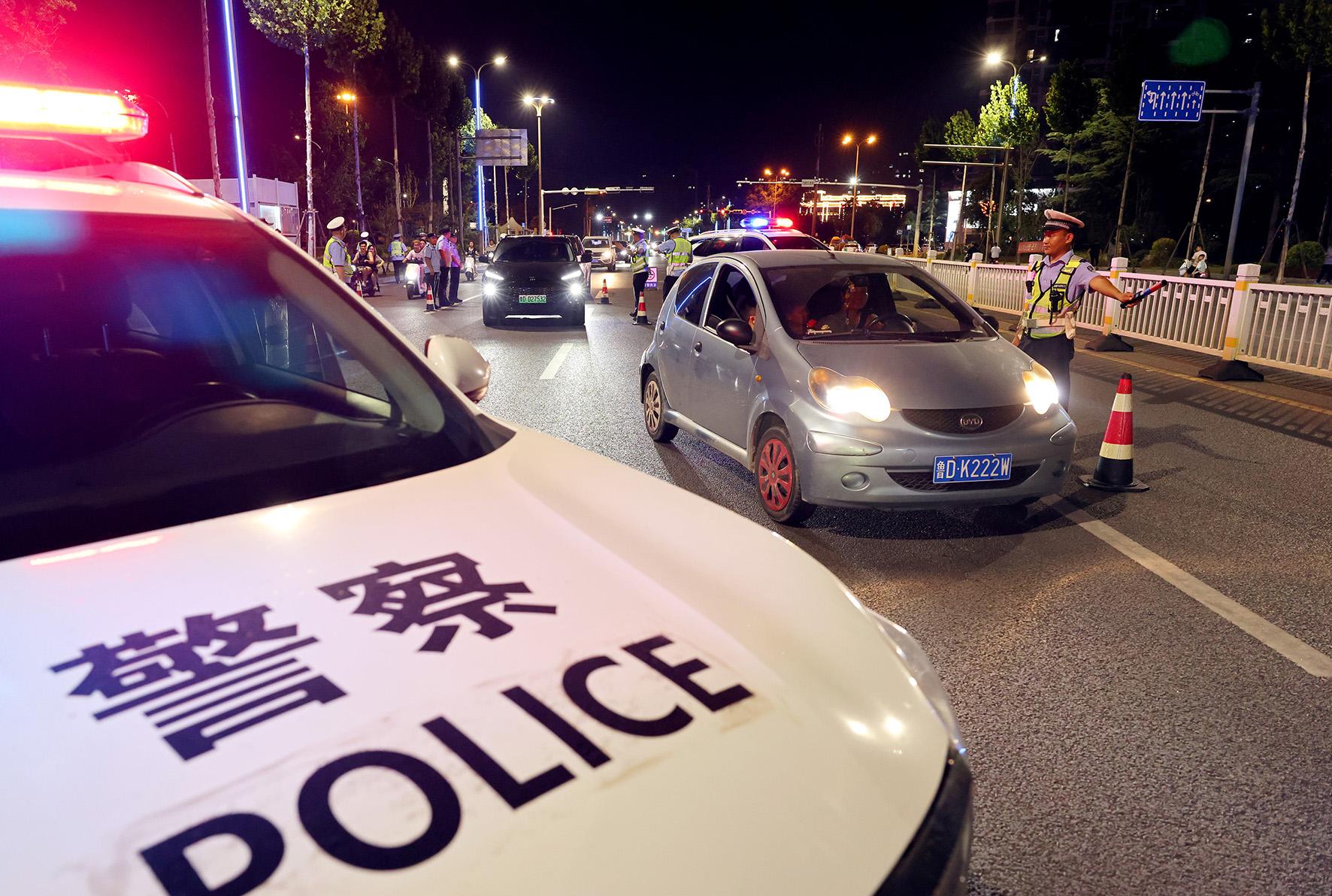 7月25日,山東省棗莊市公安局市中分局交通警察大隊(duì)組織民輔警在重點(diǎn)道路對(duì)車輛進(jìn)行檢查,嚴(yán)防酒駕等交通違法行為。