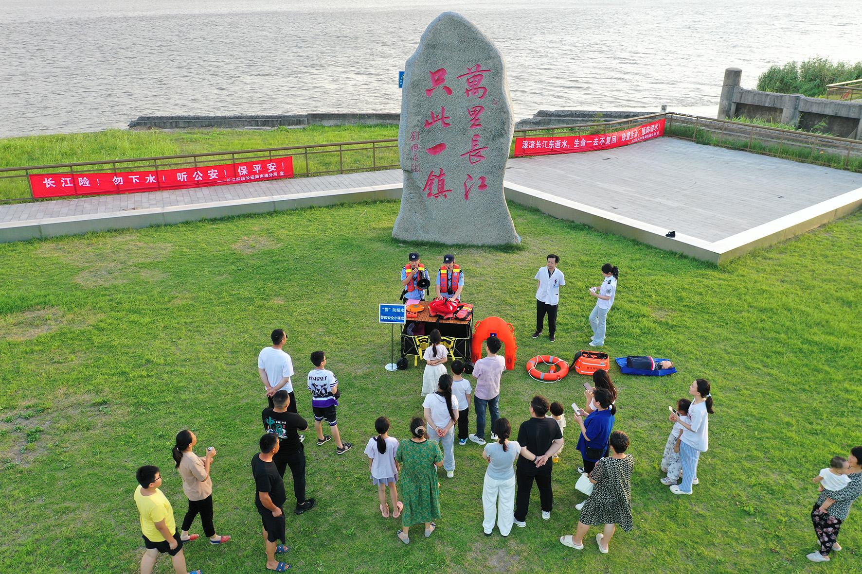 7月25日,長江航運(yùn)公安局南通分局如皋派出所聯(lián)合如皋港醫(yī)院到龍游灣沿江觀光帶開展暑期防溺水宣講活動(dòng)。