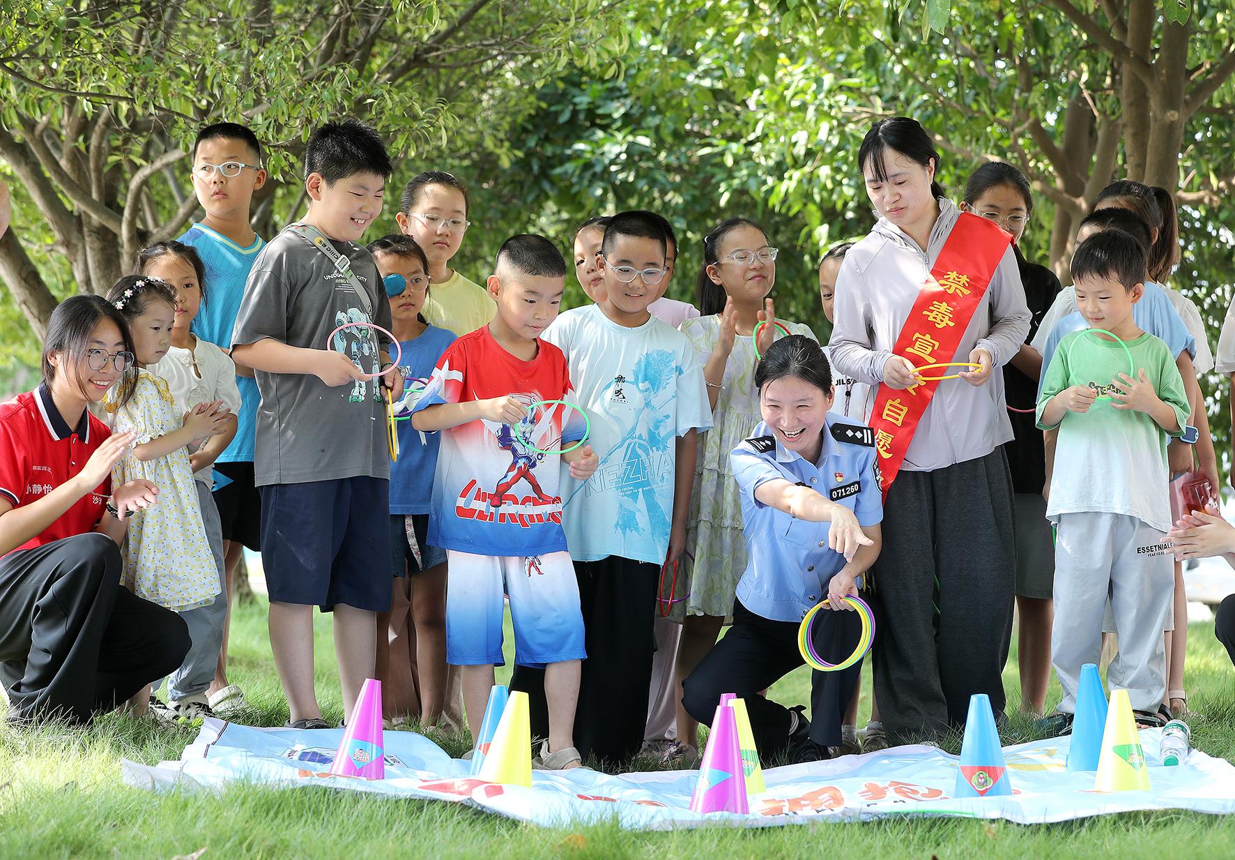7月28日,湖北省荊門市沙洋縣公安局民警走進(jìn)洪嶺社區(qū)“愛心托管班”,以趣味互動(dòng)游戲?yàn)檩d體,向青少年開展防溺水、預(yù)防校園欺凌及禁毒知識(shí)宣傳,讓孩子們?cè)跉g樂中提升自我保護(hù)能力。