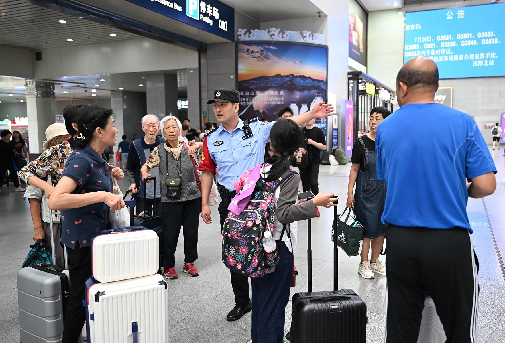 7月29日,沈陽(yáng)鐵路公安處沈陽(yáng)北站派出所針對(duì)暑運(yùn)期間學(xué)生流、家庭游旅客流激增的情況,增派警力在候車室開(kāi)展安全提醒服務(wù)。