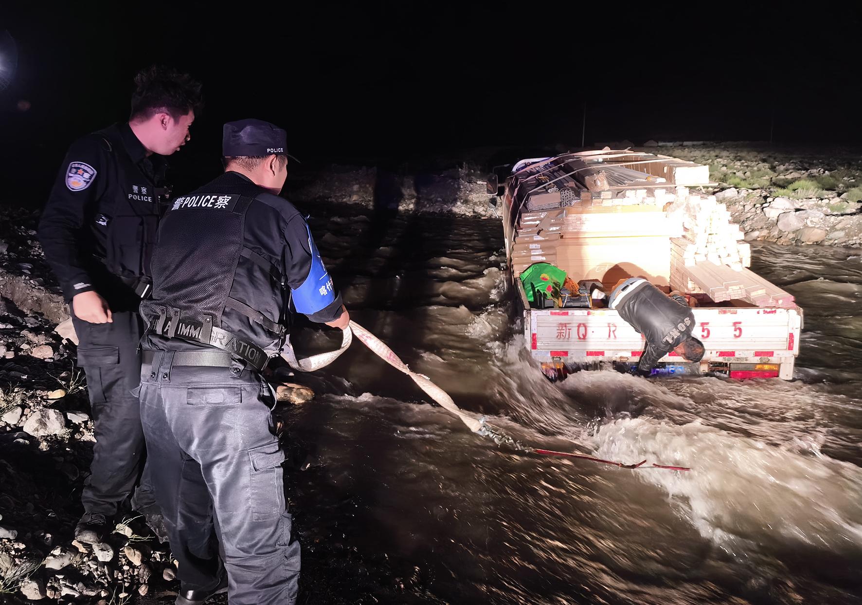 7月30日凌晨1時(shí)許,新疆喀什邊境管理支隊(duì)達(dá)布達(dá)爾邊境派出所接群眾報(bào)警求助稱:一輛滿載建筑物資的車輛被困河道中央。接警后,達(dá)布達(dá)爾邊境派出所迅速啟動(dòng)應(yīng)急預(yù)案,組織民警攜帶救援設(shè)備前往事發(fā)地點(diǎn)展開(kāi)救援。歷時(shí)約2小時(shí),將被困車輛轉(zhuǎn)移至安全區(qū)域。