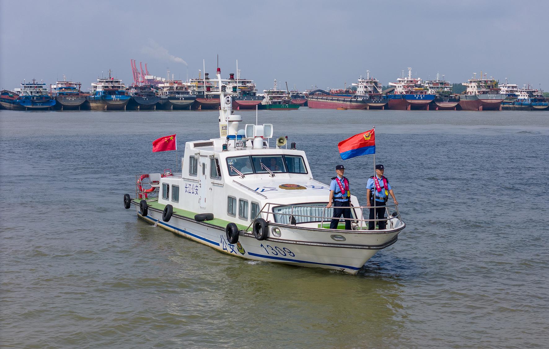 圖為民警在長江鎮(zhèn)江段荷花池錨地水域開展水上巡邏。