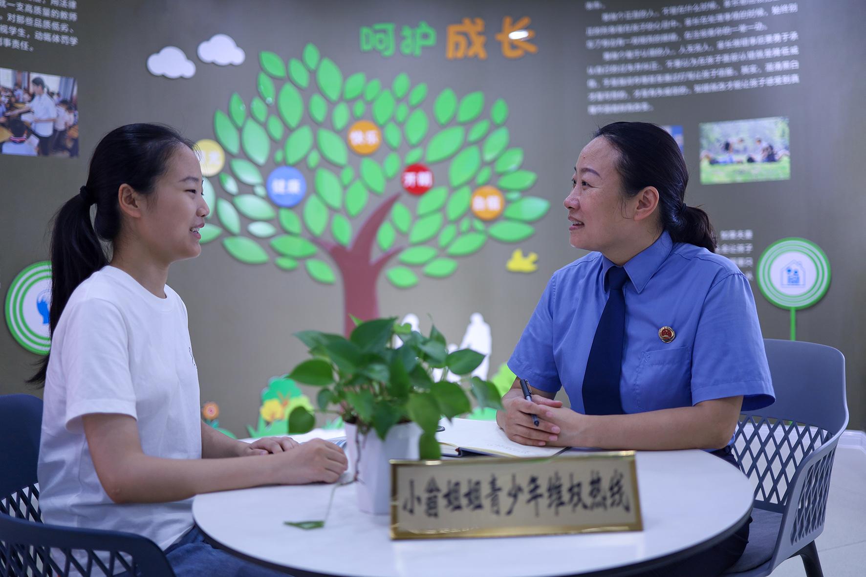 8月5日,江蘇省興化市人民檢察院檢察官在法治教育展館向?qū)W生普及未成年人保護相關(guān)法律知識。