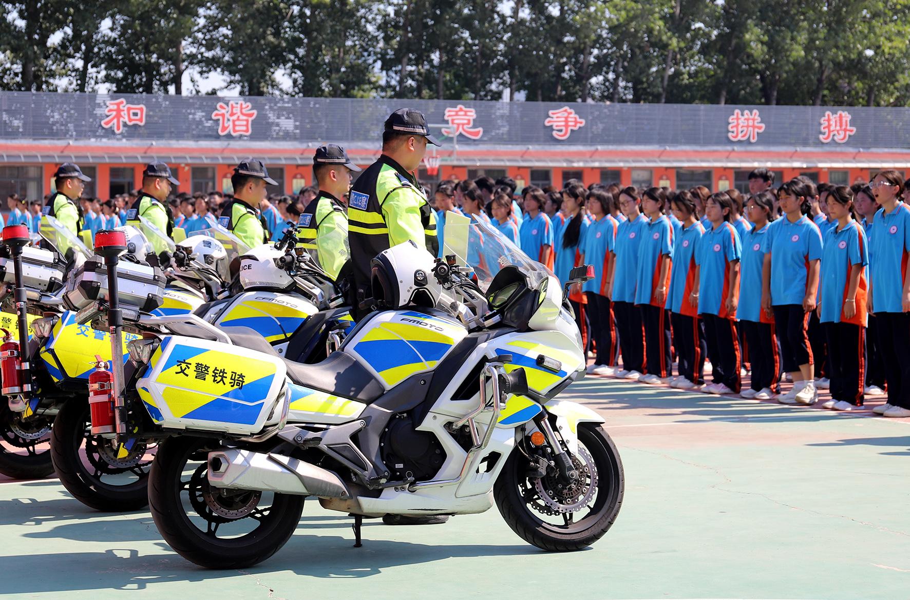 8月19日,安徽省亳州市公安局交通管理支隊鐵騎中隊走進宏志中學(xué),為高一新生開展交通安全宣傳。