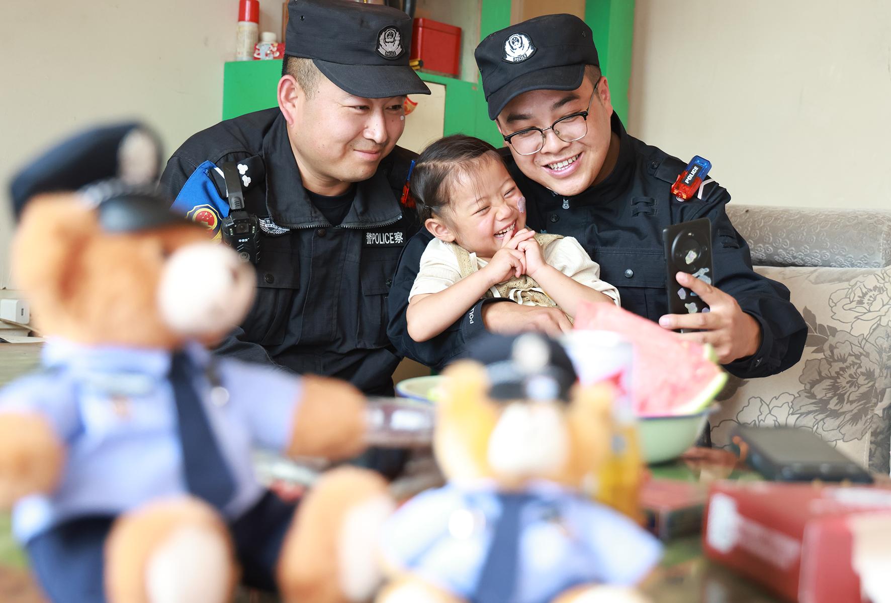 當(dāng)晚,民警們要輪崗去其他點(diǎn)位執(zhí)勤?,幀幖绷?,她緊緊拉住蘇明凱的手,哭著說(shuō):“叔叔別走!別走嘛……”看著孩子哭得通紅的小臉,蘇明凱柔聲承諾:“瑤瑤乖,叔叔過(guò)幾天就回來(lái)看你,好不好?”瑤瑤抽噎著說(shuō):“那……那我要兩個(gè)‘貼貼’!”