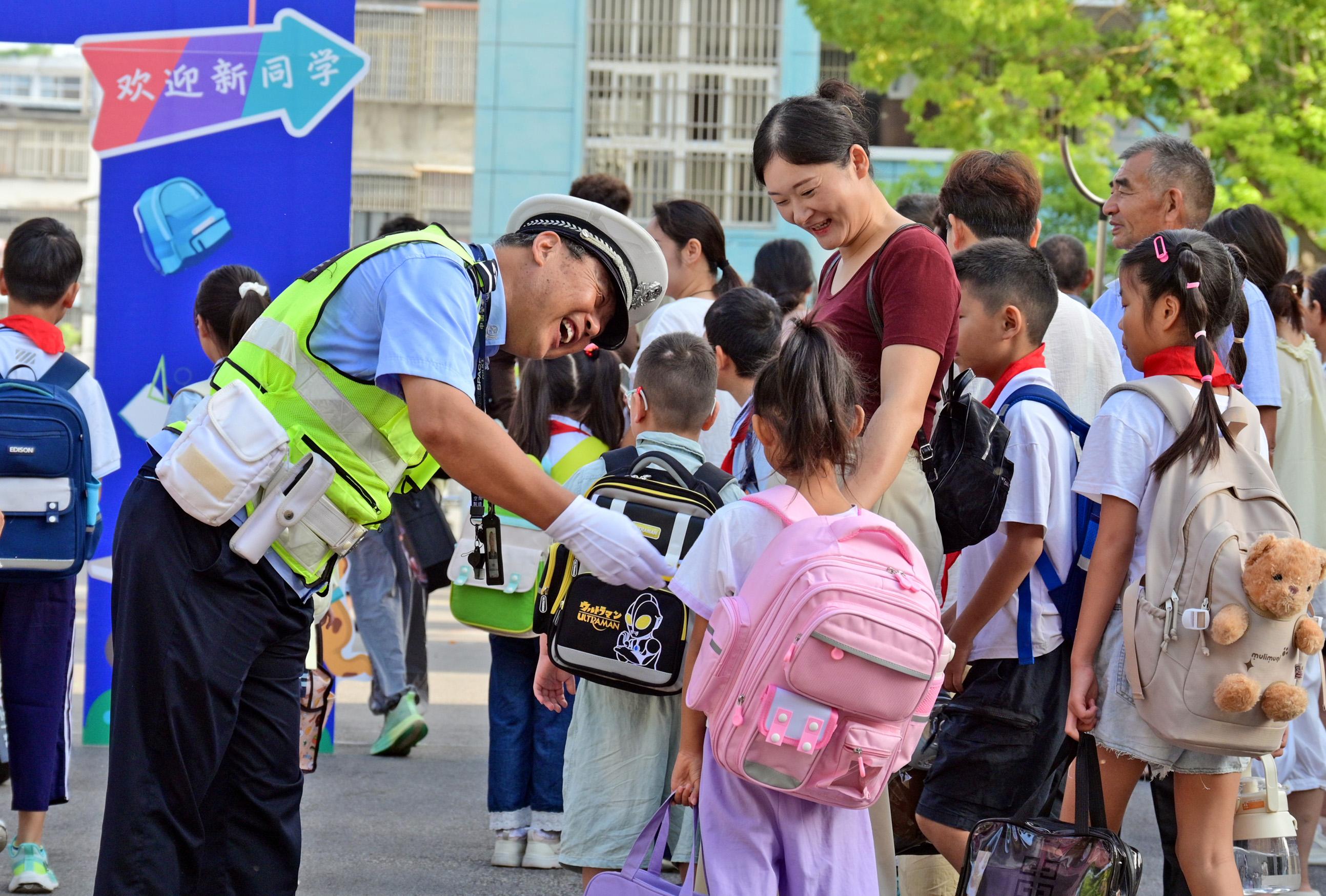 9月1日,安徽省合肥市公安局瑤海分局大通路派出所民警在滁州路小學(xué)護(hù)學(xué)崗執(zhí)勤。