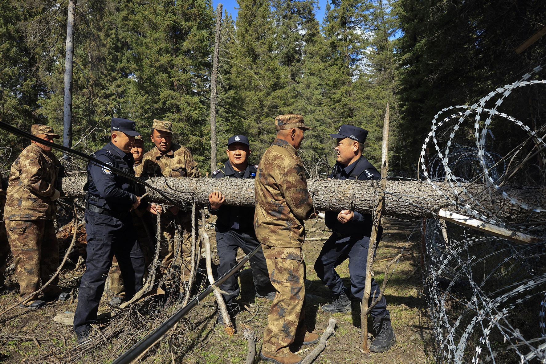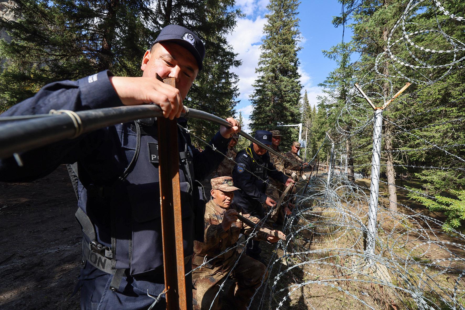 9月18日,新疆阿勒泰邊境管理支隊(duì)吐?tīng)柡檫吘撑沙鏊M織民警對(duì)阿拉爾夏牧場(chǎng)區(qū)域開(kāi)展巡邊踏查、修繕邊境設(shè)施等工作。