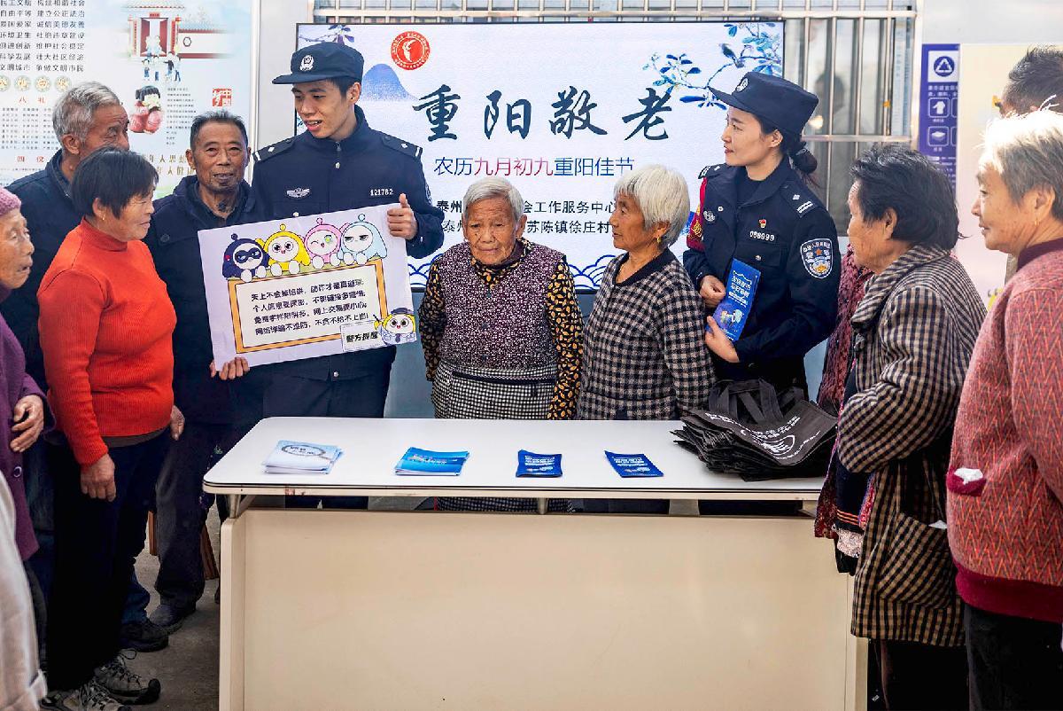 10月28日,南京鐵路公安處泰州站派出所聯(lián)合泰州市公安局海陵分局蘇陳派出所走進(jìn)蘇陳鎮(zhèn)徐莊村委會(huì),開展重陽節(jié)普法宣傳。