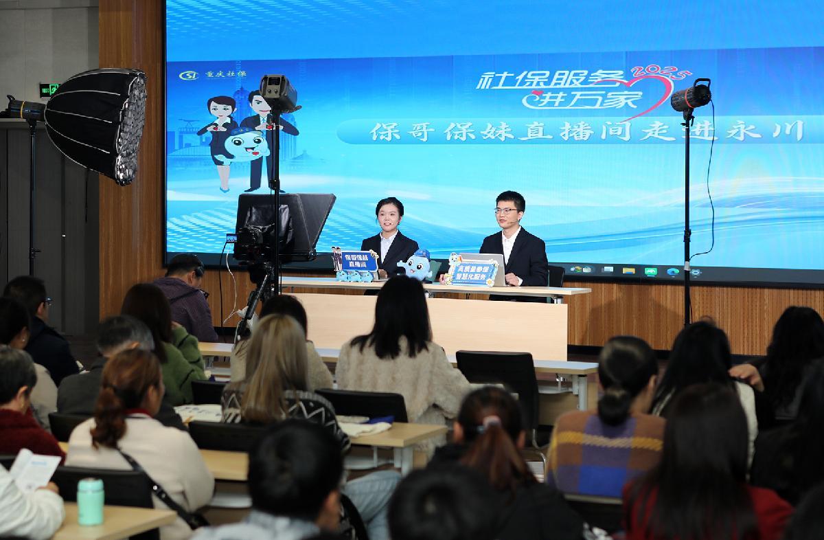10月29日,重慶市社會保險局在永川區(qū)中山路街道星光社區(qū)開展2025年“社保服務進萬家”暨“保哥保妹直播間”走進社區(qū)活動,通過“云端”互動與現(xiàn)場咨詢相結合的方式,將社保政策與暖心服務送到群眾身邊。