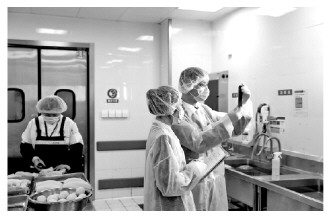 “航空食品具有供應(yīng)鏈長(zhǎng)、環(huán)節(jié)多等特點(diǎn),保質(zhì)期又通常比較短。航食企業(yè)從采購(gòu)、貯存到加工、綜合裝配、過(guò)渡冷藏,最終運(yùn)送裝機(jī),任何一個(gè)環(huán)節(jié)出現(xiàn)紕漏都可能影響食品的安全性?!蹦暇┑摽跈C(jī)場(chǎng)海關(guān)衛(wèi)生監(jiān)督科科長(zhǎng)王斌介紹,為了讓廣大旅客吃得安心、吃得安全,除了現(xiàn)場(chǎng)進(jìn)行檢查外,海關(guān)關(guān)員還會(huì)針對(duì)蔬菜農(nóng)藥殘留、食品中心溫度及食用油酸價(jià)等項(xiàng)目開(kāi)展快速檢測(cè),并對(duì)生產(chǎn)的食品隨機(jī)抽樣送實(shí)驗(yàn)室檢測(cè),以強(qiáng)化對(duì)食品生產(chǎn)經(jīng)營(yíng)單位的監(jiān)管。