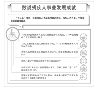 與此同時,殘疾人民生兜底保障不斷強化,殘疾人社會保障水平逐步提高,殘疾人康復(fù)狀況明顯改善,殘疾人受教育水平顯著提高,殘疾人文化體育活動豐富活躍,城鄉(xiāng)無障礙環(huán)境建設(shè)加快推進。殘疾人就業(yè)狀況穩(wěn)步提升,許多機關(guān)、事業(yè)單位和國有企業(yè)開始定向招錄殘疾人,帶動更多單位積極消除歧視、促進殘疾人平等就業(yè)。殘疾人的民生保障理念和措施不斷強化,殘疾人的獲得感、幸福感和安全感不斷提升。