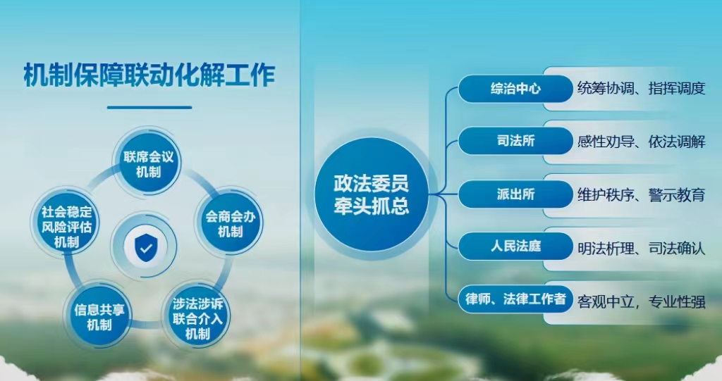 “多調(diào)聯(lián)動、‘三官一律’進網(wǎng)格、警格網(wǎng)格融合、人民調(diào)解介入信訪、訴前調(diào)解”,多年來政法系統(tǒng)各部門依托網(wǎng)格化建設(shè)履行自身職能發(fā)揮各自優(yōu)勢,或獨當一面、或互相配合化解矛盾糾紛,探索實踐的各種工作做法取得了成效。