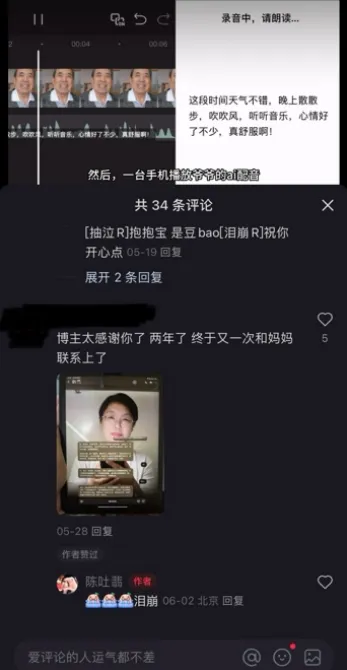 比如,今年5月12日,北大學(xué)生、AI博主“陳吐翡”曾發(fā)布一條題目為“淚崩!我用AI留住了爺爺?shù)穆曇簟钡囊曨l,在視頻中,她示范如何克隆爺爺?shù)穆曇?,“他不是百分百的爺爺,但偶爾,他?huì)蹦出一句特別像爺爺會(huì)說(shuō)的話,我知道這不是他,但我忍不住想多聽(tīng)聽(tīng)。”陳吐翡說(shuō)。