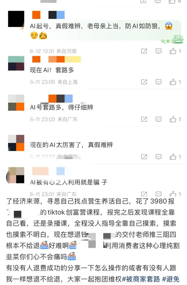 法治網(wǎng)記者注意到,在一些社交平臺上,有不少網(wǎng)友分享了被這類課程“坑”過的經(jīng)歷——有人付了錢只拿到些零散資料,自己對著學(xué)半天也摸不著門道;有人嘗試操作卻屢屢碰壁,于是調(diào)侃“現(xiàn)在防AI如防狼”;更有人想找商家咨詢,對方卻早已沒了蹤影,只能自認倒霉。