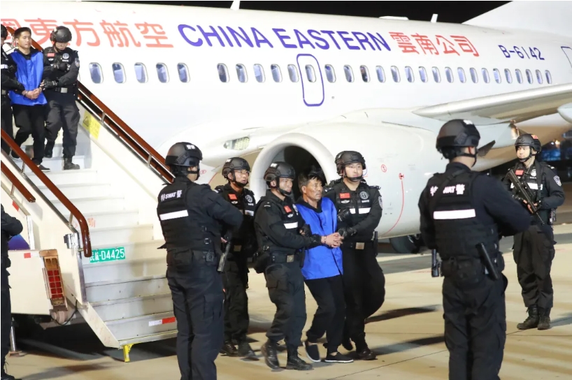 2024年1月30日,在緬甸內(nèi)比都國(guó)際機(jī)場(chǎng),緬甸警方依法向我公安機(jī)關(guān)移交緬北重大犯罪嫌疑人劉正祥。張建鑫 攝