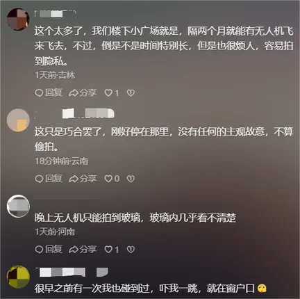 即使沒有拍到隱私畫面,無人機懸停窗外這一行為本身是否構成侵權?多數(shù)網(wǎng)友認為,家是最私密的場所,無人機貼近窗戶飛行打破了居民的心理安全防線,其行為本身就帶來了被窺視的恐懼感和心理不適。