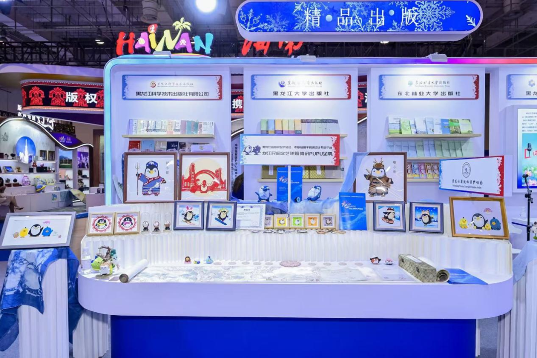 在黑龍江省展區(qū),在黑龍江省委宣傳部(省版權局)指導下,黑龍江省版權保護協(xié)會聯(lián)合騰訊、中國版權鏈,共同策劃呈現(xiàn)了"PUPU企鵝+非遺"創(chuàng)新專題展。該項目邀請黑龍江非遺傳承人,將魚皮畫、剪紙、藍布印染等傳統(tǒng)非遺技藝與潮流IP“pupu企鵝”進行創(chuàng)新融合,通過傳統(tǒng)技藝創(chuàng)新演繹潮流IP,讓古老非遺在現(xiàn)代設計語境的詮釋下煥發(fā)全新生命力。共同構建出“非遺活化+IP授權+版權保護+商業(yè)轉化”的閉環(huán)模式。共同探索實現(xiàn)傳統(tǒng)民間技藝與國際化IP的創(chuàng)造性轉化和創(chuàng)新性發(fā)展。為傳統(tǒng)文化與現(xiàn)代商業(yè)的融合提供了可復制的創(chuàng)新路徑。此次創(chuàng)新成果展得到了中國版權協(xié)會領導的大力支持和高度肯定,中國版權協(xié)會理事長周慧琳、副理事長兼秘書長杜賢蒞臨展區(qū)參觀指導并與工作人員深入交流非遺技藝的創(chuàng)造性轉化,并指出要抓住版權這個關鍵要素,務求實效,讓非遺技藝傳承下去并創(chuàng)新性發(fā)展。