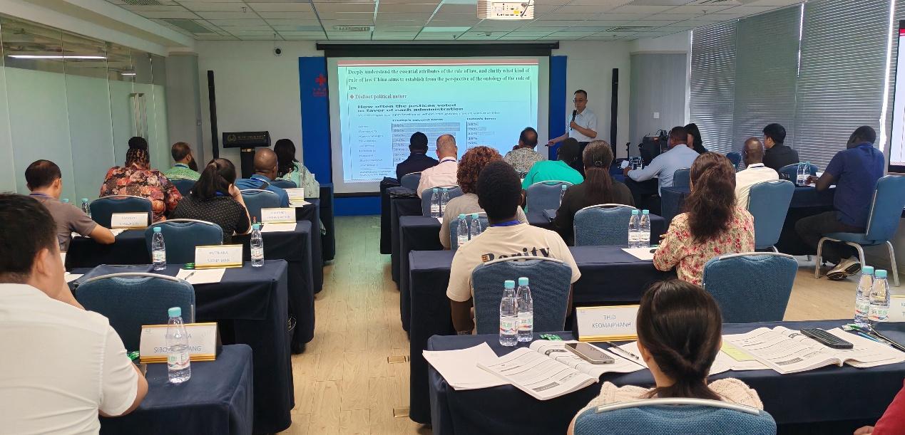 陳文彬院長通過全英文的沉浸式教學(xué),系統(tǒng)闡述了習(xí)近平法治思想的原創(chuàng)性貢獻(xiàn),并對(duì)其核心要義和科學(xué)方法作了深入分析和講述,課程內(nèi)容深刻而豐富,授課過程中,突出案例式和研討式教學(xué)。學(xué)員積極參與互動(dòng),熱情度極高,圍繞法治和人治的比較,中國的法治建設(shè)和降低犯罪率、貧困率之間的關(guān)系,如何讓普通人對(duì)法律建立真誠信仰,領(lǐng)導(dǎo)人如何了解人民的意愿,以及如何從“5個(gè)體系”推動(dòng)法治建設(shè)等展開交流,陳文彬院長用流利的英語為學(xué)員答疑解惑,平等的對(duì)話和坦誠的交流讓學(xué)員進(jìn)一步加深了對(duì)中國法治理念的認(rèn)同。