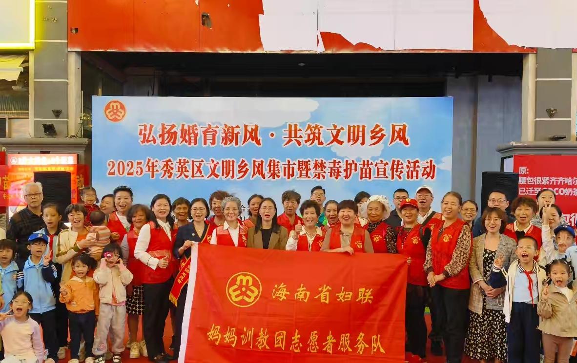 2025年10月24日下午,海南省婦聯(lián)“媽媽訓教團”志愿者服務隊聯(lián)合海口市秀英區(qū)婦聯(lián)、秀英區(qū)文明辦、秀英區(qū)司法局、秀英區(qū)民政局、團秀英區(qū)委、秀英街道辦事處、北京盈科(??冢┞蓭熓聞账?、海口市“媽媽驛站”(秀英站)、??谑胁┘{社會工作服務中心等單位,共同舉辦“弘揚婚育新風·共筑文明鄉(xiāng)風”2025年秀英區(qū)文明鄉(xiāng)風集市暨禁毒護苗宣傳活動。
