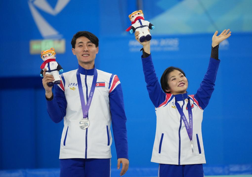 2月12日,朝鮮組合廉太鈺(右)/韓錦澈在頒獎(jiǎng)儀式上。新華社記者 顏麟蘊(yùn) 攝