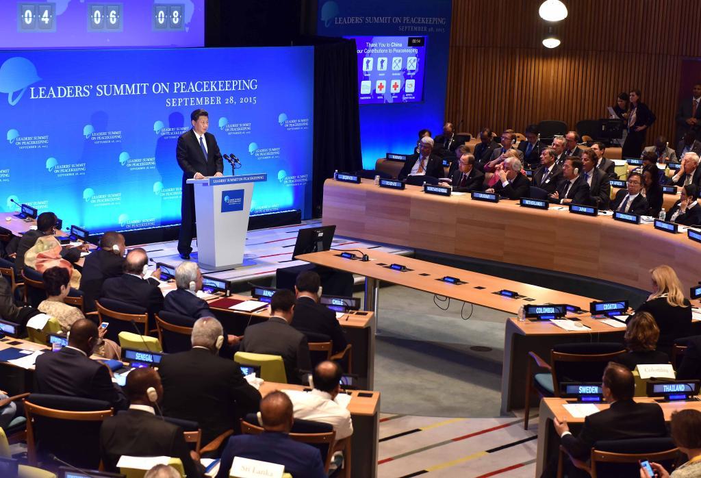 ??2015年9月,習近平總書記在紐約聯(lián)合國總部出席聯(lián)合國維和峰會并發(fā)表講話。新華社記者 李濤 攝