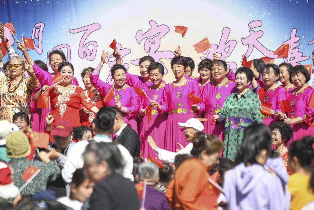 2024年9月15日,新疆烏魯木齊市天山區(qū)固原巷社區(qū)舉辦“中秋月圓百家宴 歡天喜地迎國慶”活動(dòng),人們載歌載舞,共享節(jié)日歡樂。