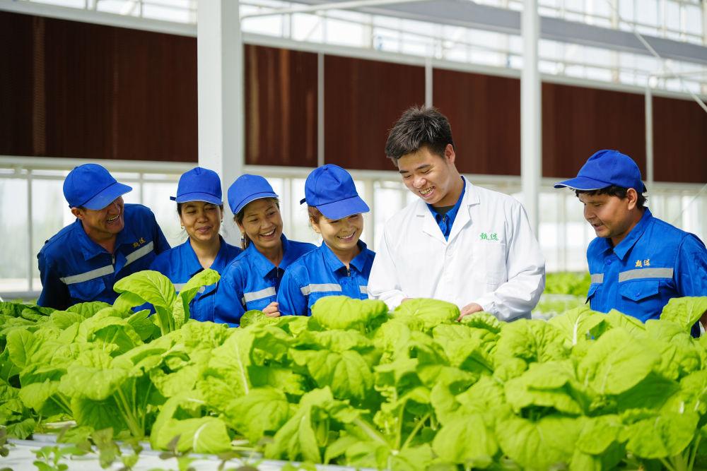 2025年6月25日,在新疆阿克蘇地區(qū)庫車市甬庫同心村智慧農(nóng)業(yè)植物工廠,技術(shù)人員在培訓(xùn)當(dāng)?shù)氐霓r(nóng)業(yè)產(chǎn)業(yè)工人。該工廠是浙江省寧波市對(duì)口援疆項(xiàng)目之一,引入了寧波企業(yè)先進(jìn)的無土栽培技術(shù)和設(shè)備,通過智能調(diào)控成功種植多種原本不適宜在當(dāng)?shù)厣娴霓r(nóng)作物。該項(xiàng)目在幫助村民在家門口實(shí)現(xiàn)就業(yè)的同時(shí),還為當(dāng)?shù)嘏囵B(yǎng)了農(nóng)業(yè)產(chǎn)業(yè)工人,同時(shí)為周邊學(xué)校開展農(nóng)業(yè)科技科普提供了便利,實(shí)現(xiàn)經(jīng)濟(jì)效益與社會(huì)效益“雙豐收”。