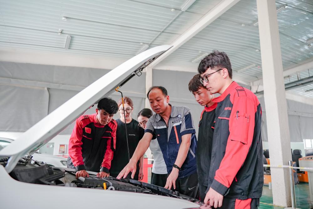2025年6月27日,在新疆和田技師學(xué)院,援疆教師李寶(中)和當(dāng)?shù)亟處熞煌笇?dǎo)學(xué)生維修汽車。該校是北京市對(duì)口援疆幫扶單位之一,2020年以來,北京市向該校派出3批次累計(jì)30人次的援疆教師隊(duì)伍,他們?cè)趨⑴c學(xué)校管理、承擔(dān)教學(xué)任務(wù)的基礎(chǔ)上,還主動(dòng)開展“傳幫帶”培養(yǎng)當(dāng)?shù)亟處煟e極組織和指導(dǎo)學(xué)生參與各類技能競(jìng)賽,為當(dāng)?shù)芈殬I(yè)技術(shù)教育高質(zhì)量發(fā)展貢獻(xiàn)力量。