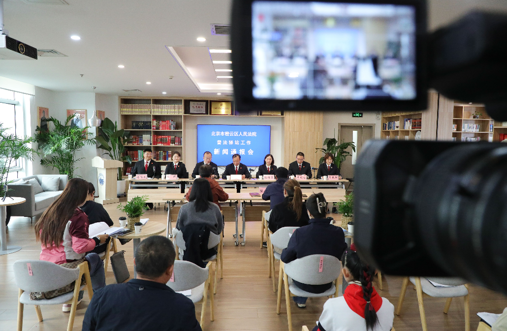 圖為密云區(qū)法院召開新聞發(fā)布會,向社會通報(bào)普法驛站建設(shè)情況。