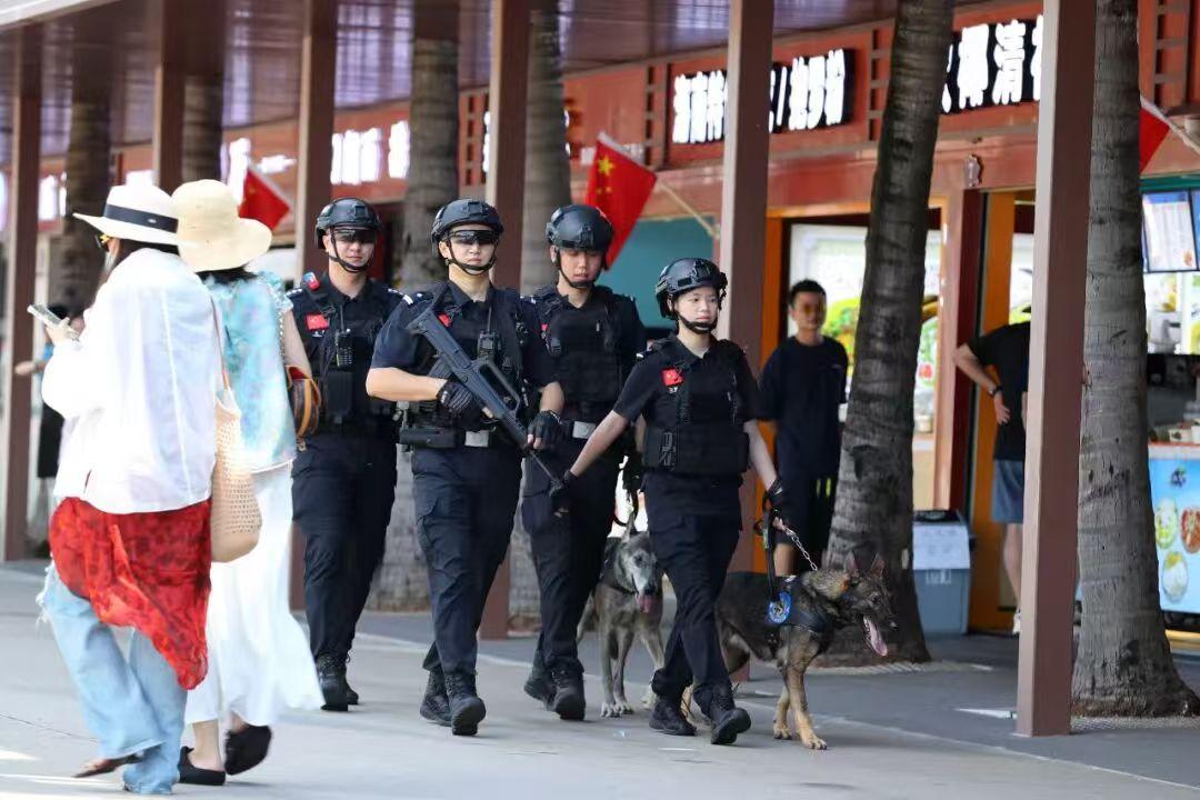 節(jié)日期間,三亞警方實施公安武警武裝聯勤“三線兩區(qū)兩點”巡邏模式,加強公安特警網格化巡控,嚴格落實“1、3、5分鐘”快速反應機制,各公安分局組織警力加強對重點路段、部位和人員密集場所、景區(qū)的治安巡查,最大限度將警力擺到街面,做到見警燈、見警車、見警察,讓市民游客真切感受到平安就在身邊。