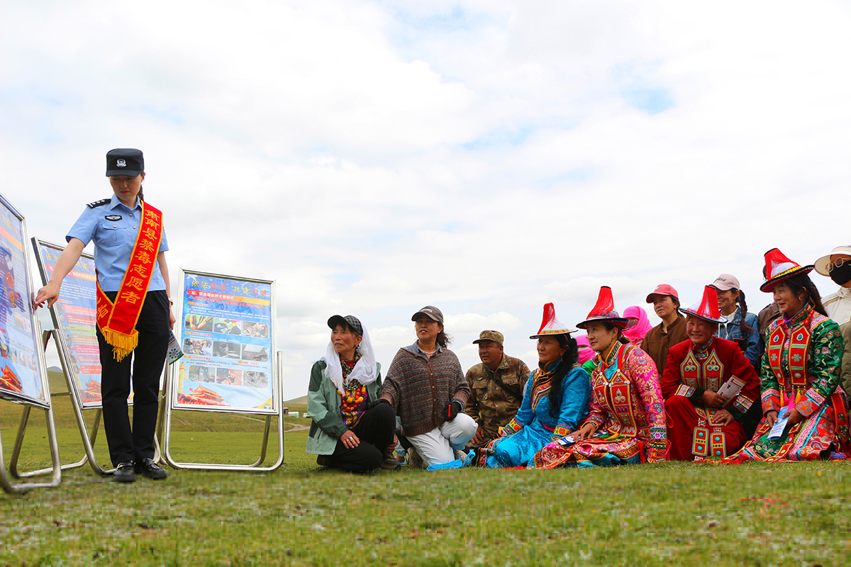 6月19日,甘肅省肅南縣公安局禁毒大隊(duì)民警走進(jìn)牧區(qū)開展禁毒宣傳,民警用“雙語(yǔ)”面對(duì)面向群眾講解毒品的種類、性狀以及危害性,提高牧區(qū)群眾禁毒意識(shí)。