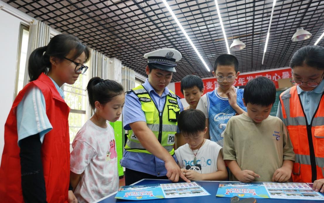 連日來,江西省吉安市遂川縣公安局交警大隊(duì)組織民警和青年志愿者走進(jìn)轄區(qū)暑期興趣班,通過以案說法、知識(shí)問答等方式宣講交通安全知識(shí),引導(dǎo)孩子們正確識(shí)別交通標(biāo)志標(biāo)線,提升自我保護(hù)能力。圖為7月23日,民警走進(jìn)暑期興趣班宣講交通安全知識(shí)。
