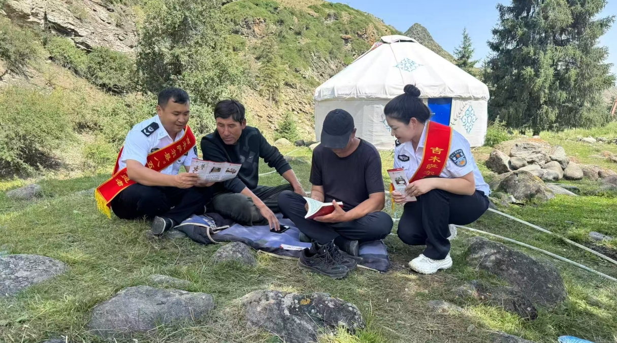 7月14日,新疆吉木薩爾縣司法局“馬背普法隊”成員騎馬來到草原深處的牧業(yè)點開展普法宣傳活動。司法局干警將法條編成牧民熟悉的諺語,將案例融入日常聊天,在轉(zhuǎn)場路上設(shè)立“移動普法站”,在牧場開設(shè)“氈房法律課堂”,讓尊法學法守法用法的種子在每一片草原、每一戶牧民心中生根發(fā)芽。