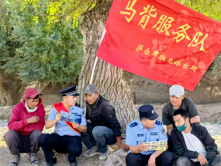為提升法治宣傳實效,織密安全“防護網(wǎng)”,近日,新疆霍城縣公安局薩爾布拉克鎮(zhèn)派出所“馬背服務(wù)隊”深入牧區(qū)開展法治宣傳活動。“馬背服務(wù)隊”深入山區(qū)勘察轉(zhuǎn)場路線,提醒牧民轉(zhuǎn)場時不要在公路上隨意穿越,警惕避讓夜間行駛的車輛,確保安全。同時,圍繞損害賠償、權(quán)益維護、草牧場流轉(zhuǎn)、債務(wù)糾紛等內(nèi)容,用通俗易懂的語言和群眾喜聞樂見的方式宣傳講解相關(guān)法律知識,提醒群眾爭當(dāng)守法公民,學(xué)會用法律知識維護自身合法權(quán)益。