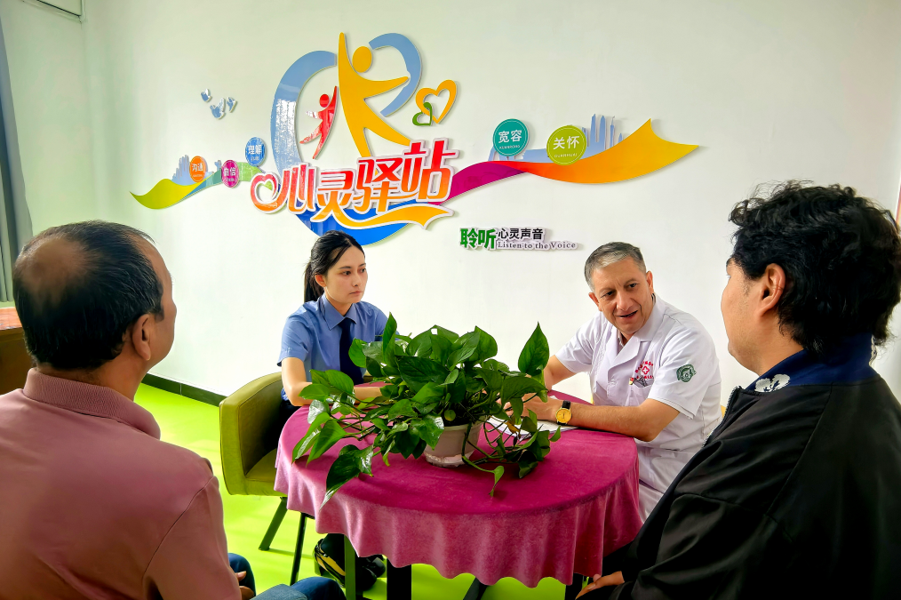 圖為9月18日,在澤普縣綜治中心的心理疏導(dǎo)室,工作人員正在向來訪群眾開展心理咨詢服務(wù)。潘從武 攝