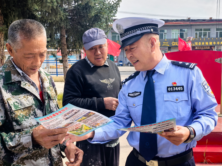 為進(jìn)一步提高農(nóng)村地區(qū)居民安全出行意識(shí),預(yù)防道路交通事故,9月27日上午,內(nèi)蒙古自治區(qū)呼和浩特市和林格爾縣公安局交通管理大隊(duì)組織民警走進(jìn)新店子村,以“美麗鄉(xiāng)村行”為主題,開展形式多樣的交通安全宣傳活動(dòng)。