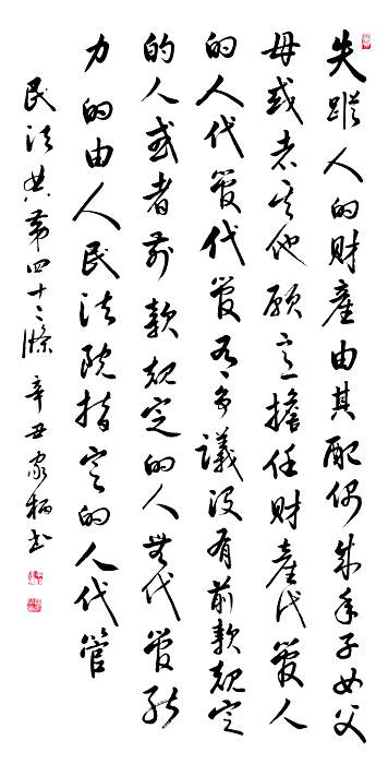 民法典第四十二條 失蹤人的財產(chǎn)由其配偶、成年子女、父母或者其他愿意擔(dān)任財產(chǎn)代管人的人代管。
