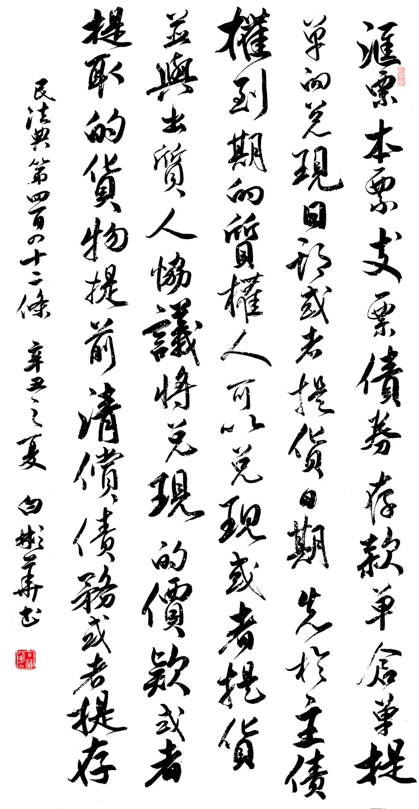 “書·法”活動(dòng)以書寫《中華人民共和國民法典》法條開筆,未來將對準(zhǔn)更多的法律。