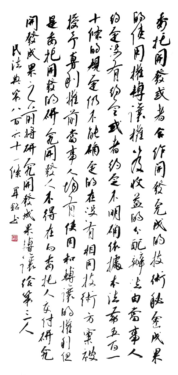 民法典第八百六十一條 委托開(kāi)發(fā)或者合作開(kāi)發(fā)完成的技術(shù)秘密成果的使用權(quán)、轉(zhuǎn)讓權(quán)以及收益的分配辦法,由當(dāng)事人約定;沒(méi)有約定或者約定不明確,依據(jù)本法第五百一十條的規(guī)定仍不能確定的,在沒(méi)有相同技術(shù)方案被授予專利權(quán)前,當(dāng)事人均有使用和轉(zhuǎn)讓的權(quán)利。但是,委托開(kāi)發(fā)的研究開(kāi)發(fā)人不得在向委托人交付研究開(kāi)發(fā)成果之前,將研究開(kāi)發(fā)成果轉(zhuǎn)讓給第三人。