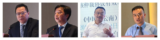 第一環(huán)節(jié),由貿(mào)仲西南分會(huì)、海仲西南分會(huì)秘書長王瑞琛,云南東南亞研究會(huì)會(huì)長瞿健文,云南大學(xué)法學(xué)院教授、貿(mào)仲和海仲仲裁員陳云東,云南自由貿(mào)易試驗(yàn)區(qū)昆明片區(qū)國家級(jí)昆明經(jīng)濟(jì)技術(shù)開發(fā)區(qū)行政審批局局長、貿(mào)仲和海仲仲裁員張靜梅,圍繞“仲裁在解決國際國內(nèi)貿(mào)易糾紛方面的優(yōu)勢(shì)”,進(jìn)行研討發(fā)言。