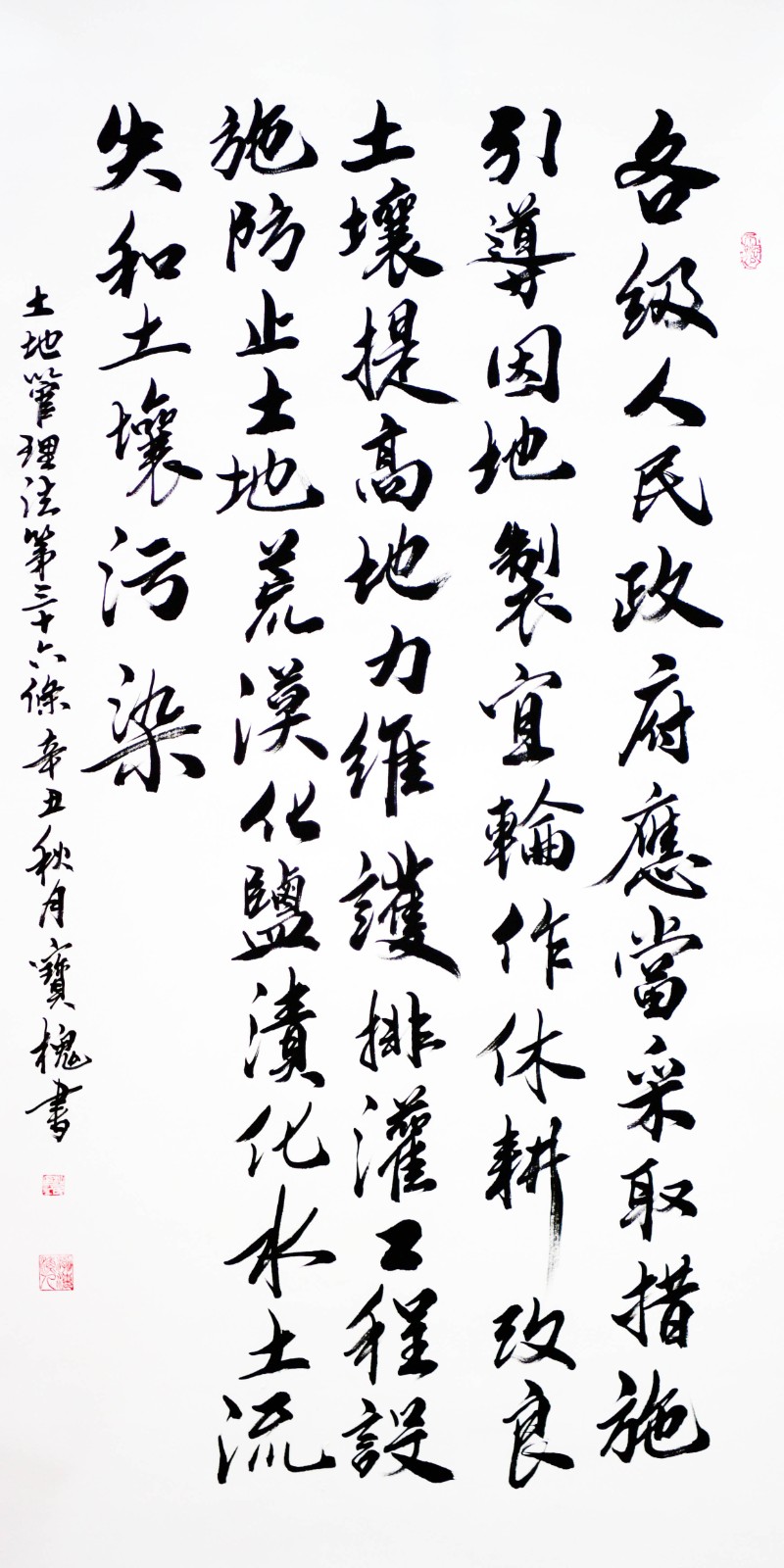 繼1600余位書法家參與書寫《中華人民共和國民法典》全部1260條法條之后,法治日報(bào)社聯(lián)合自然資源部法規(guī)司、自然資源部書畫研究會和北京昌平書法家協(xié)會,將筆端對準(zhǔn)土地管理“一法一條例”,即《中華人民共和國土地管理法》和《中華人民共和國土地管理法實(shí)施條例》。