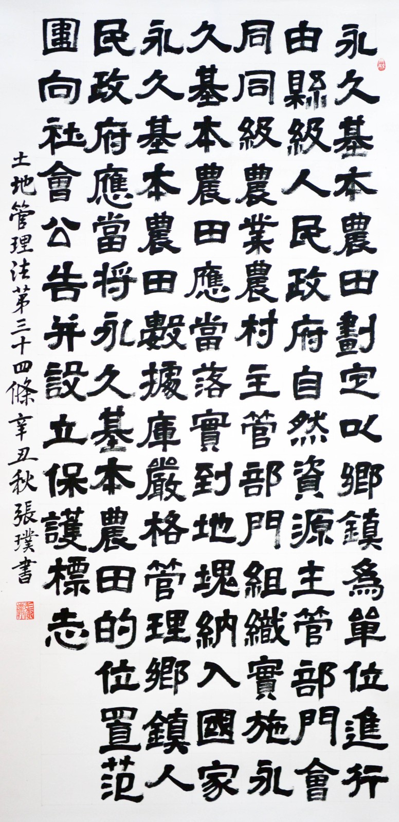 繼1600余位書法家參與書寫《中華人民共和國民法典》全部1260條法條之后,法治日報(bào)社聯(lián)合自然資源部法規(guī)司、自然資源部書畫研究會和北京昌平書法家協(xié)會,將筆端對準(zhǔn)土地管理“一法一條例”,即《中華人民共和國土地管理法》和《中華人民共和國土地管理法實(shí)施條例》。