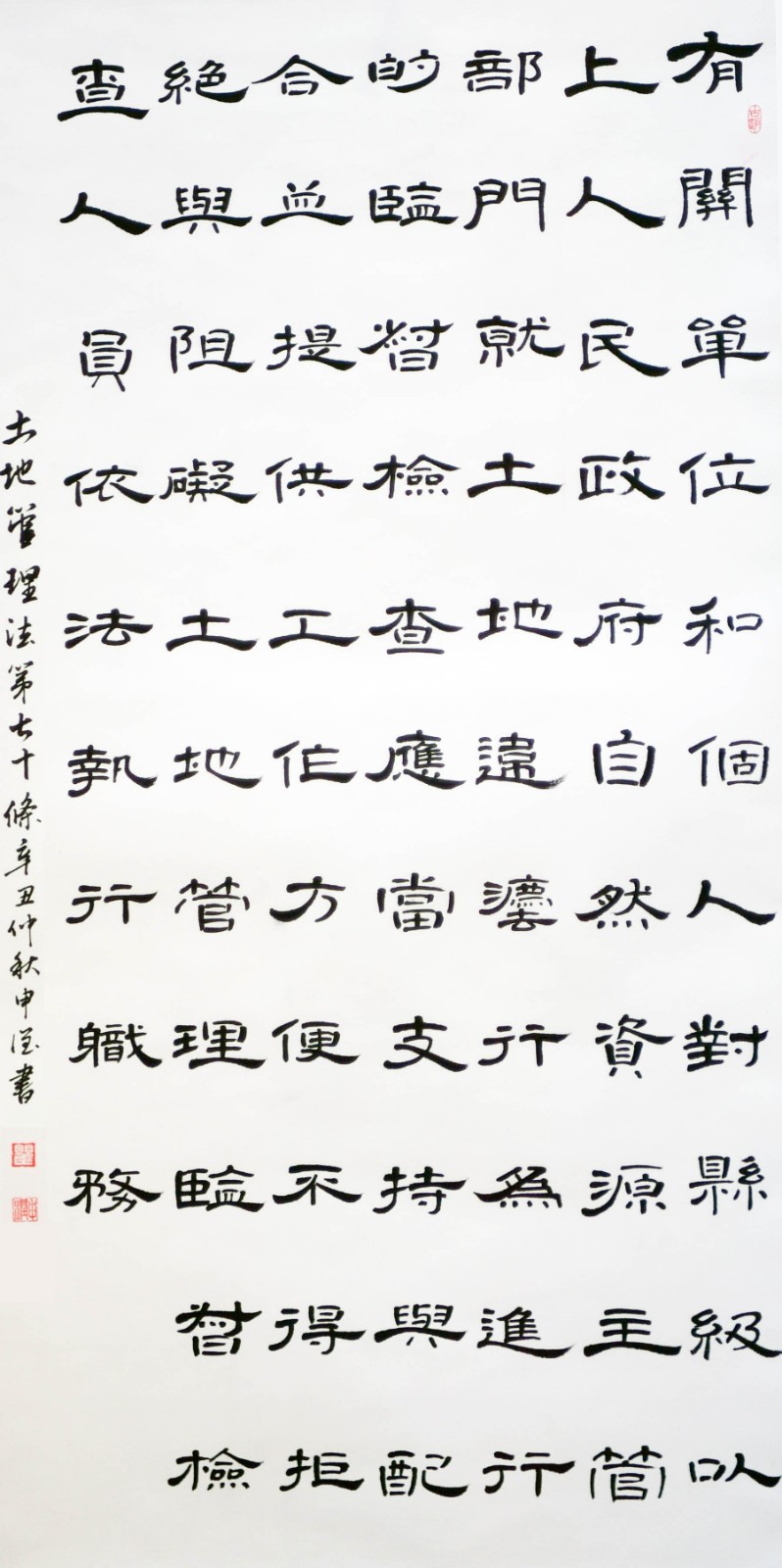 繼1600余位書法家參與書寫《中華人民共和國民法典》全部1260條法條之后,法治日報社聯(lián)合自然資源部法規(guī)司、自然資源部書畫研究會和北京昌平書法家協(xié)會,將筆端對準(zhǔn)土地管理“一法一條例”,即《中華人民共和國土地管理法》和《中華人民共和國土地管理法實(shí)施條例》。