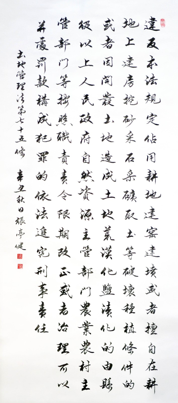 繼1600余位書法家參與書寫《中華人民共和國(guó)民法典》全部1260條法條之后,法治日?qǐng)?bào)社聯(lián)合自然資源部法規(guī)司、自然資源部書畫研究會(huì)和北京昌平書法家協(xié)會(huì),將筆端對(duì)準(zhǔn)土地管理“一法一條例”,即《中華人民共和國(guó)土地管理法》和《中華人民共和國(guó)土地管理法實(shí)施條例》。
