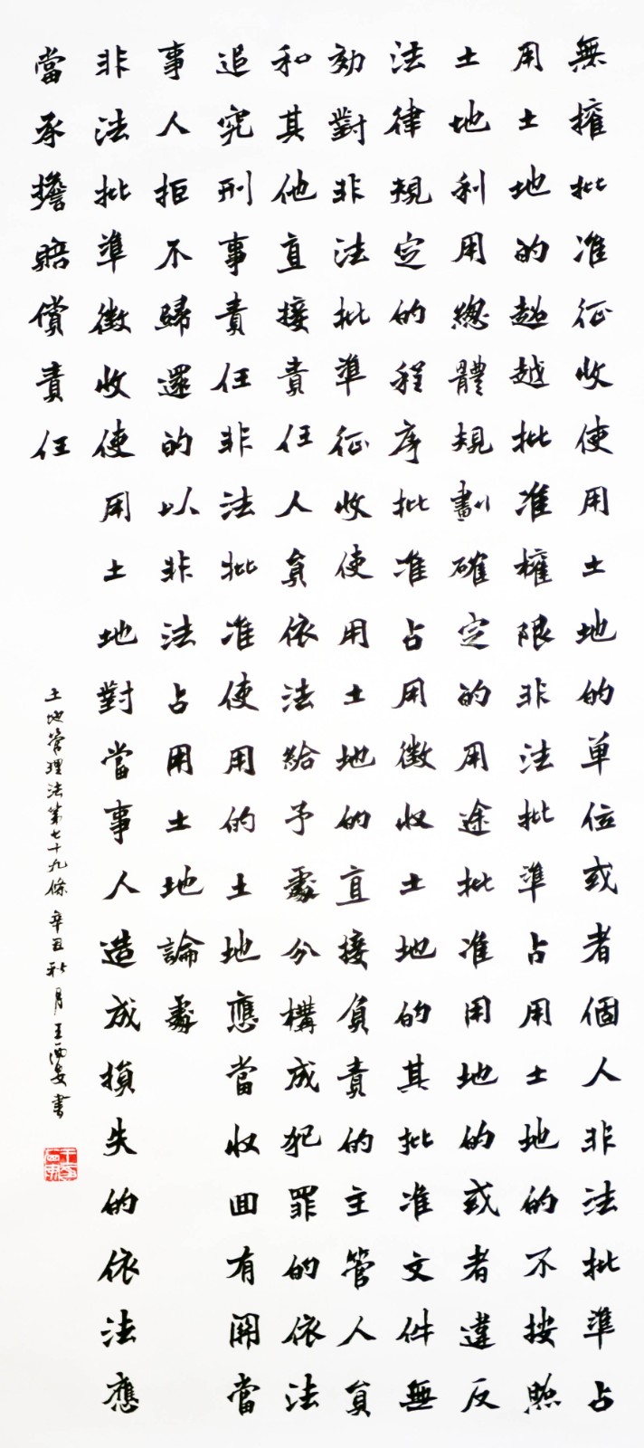 繼1600余位書法家參與書寫《中華人民共和國民法典》全部1260條法條之后,法治日報社聯(lián)合自然資源部法規(guī)司、自然資源部書畫研究會和北京昌平書法家協(xié)會,將筆端對準(zhǔn)土地管理“一法一條例”,即《中華人民共和國土地管理法》和《中華人民共和國土地管理法實施條例》。