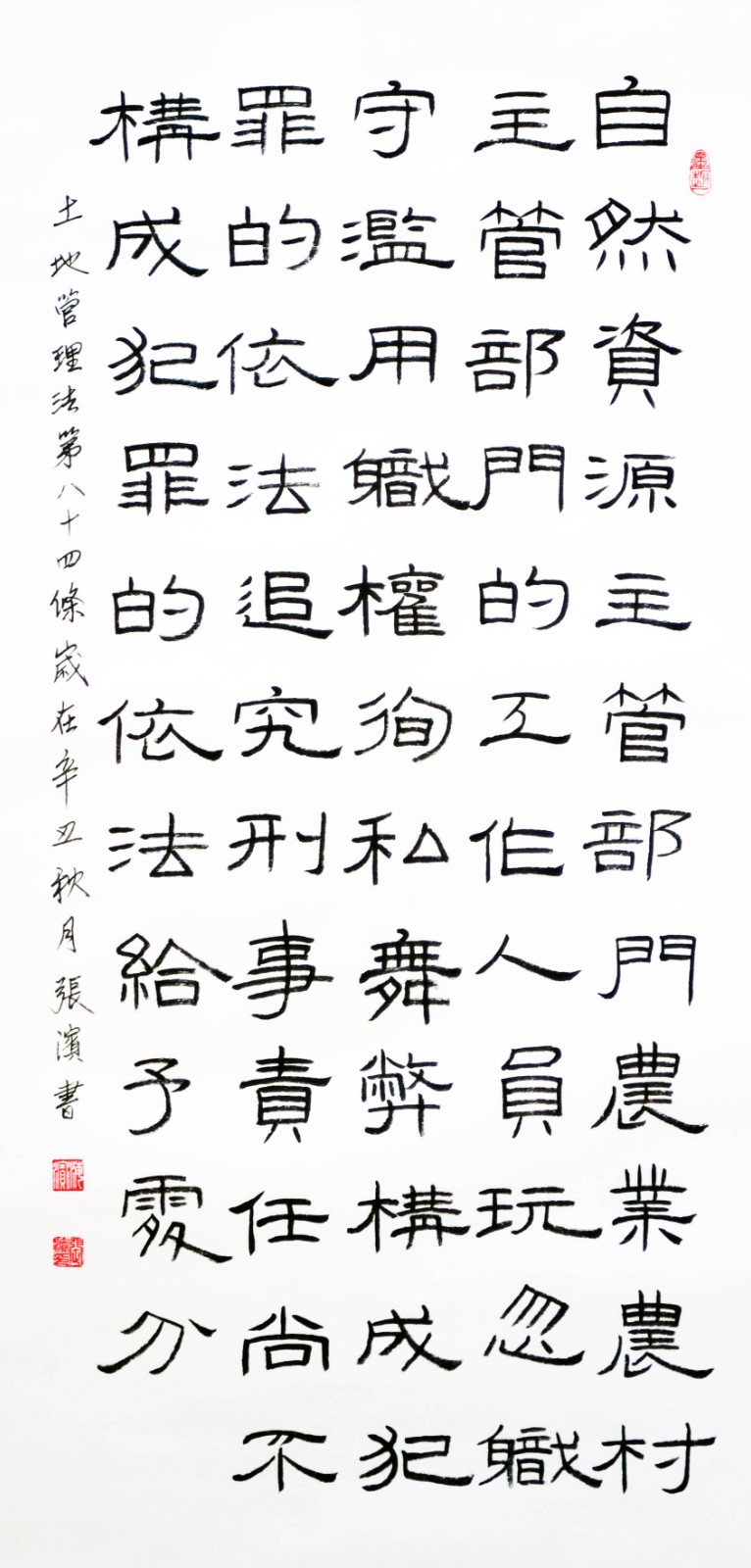 繼1600余位書法家參與書寫《中華人民共和國民法典》全部1260條法條之后,法治日報(bào)社聯(lián)合自然資源部法規(guī)司、自然資源部書畫研究會(huì)和北京昌平書法家協(xié)會(huì),將筆端對準(zhǔn)土地管理“一法一條例”,即《中華人民共和國土地管理法》和《中華人民共和國土地管理法實(shí)施條例》。