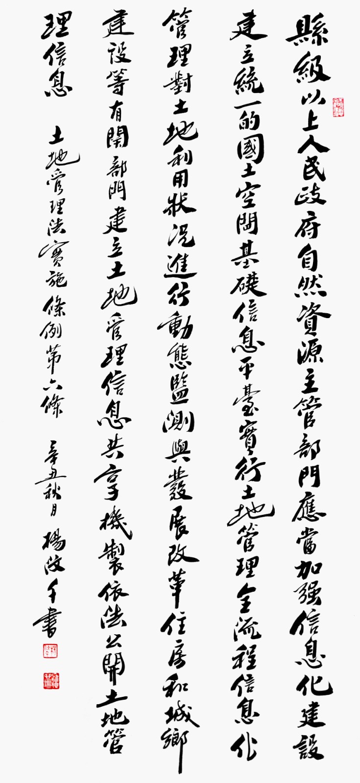 繼1600余位書法家參與書寫《中華人民共和國(guó)民法典》全部1260條法條之后,法治日?qǐng)?bào)社聯(lián)合自然資源部法規(guī)司、自然資源部書畫研究會(huì)和北京昌平書法家協(xié)會(huì),將筆端對(duì)準(zhǔn)土地管理“一法一條例”,即《中華人民共和國(guó)土地管理法》和《中華人民共和國(guó)土地管理法實(shí)施條例》。